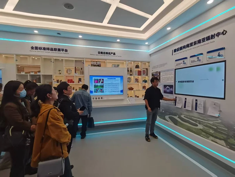 培訓(xùn)期間,參訓(xùn)學(xué)員參觀云南省標(biāo)準(zhǔn)數(shù)字化展示服務(wù)平臺,觀看模型、標(biāo)準(zhǔn)樣品實物,實地體驗中國標(biāo)準(zhǔn)化起源、云南生態(tài)文明建設(shè)、高原特色農(nóng)業(yè)、生物多樣性保護等全域標(biāo)準(zhǔn)化生動實踐成果展演。