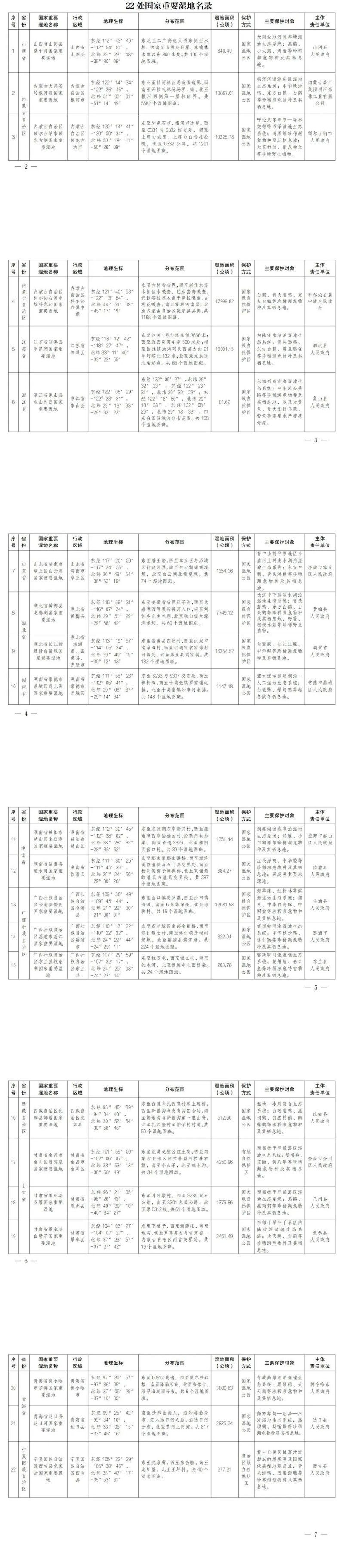 根據(jù)《濕地保護(hù)法》《國家重要濕地認(rèn)定和名錄發(fā)布規(guī)定》和《國家重要濕地確定指標(biāo)》等相關(guān)要求,經(jīng)商國務(wù)院有關(guān)部門同意,我局決定將山西省山陰縣桑干河等 22 處濕地列入國家重要濕地名錄,現(xiàn)予以發(fā)布。