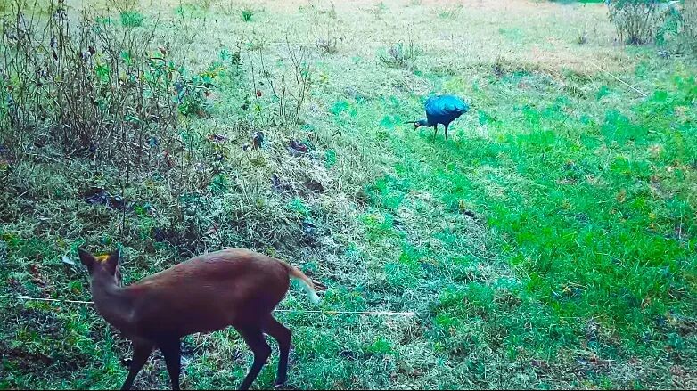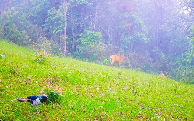 據(jù)保護(hù)區(qū)工作人員介紹,此次拍攝到的影像資料是該區(qū)域首次同時(shí)記錄到這三種野生動(dòng)物的活動(dòng)蹤跡。畫面中,白腹錦雞身披絢麗羽毛,野生綠孔雀展露華美羽毛,而赤麂則警覺地在附近覓食,三者和諧共處的畫面令人驚嘆。