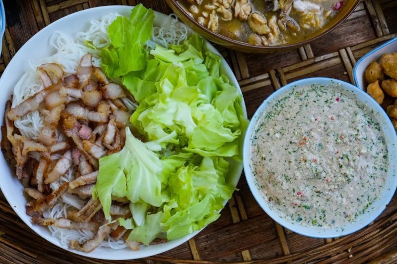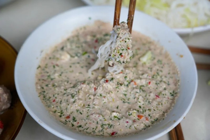 核桃的脆嫩與米線的爽滑交織,口感香醇濃郁。核桃的醇厚裹著果酸的清爽,微微的澀感被辣味中和,每一口都帶著堅(jiān)果的馥郁與傣味的通透。