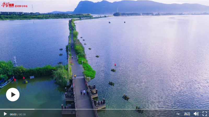 秋日里的昆明東風(fēng)壩,七孔浮橋靜靜泊在明澈的水面上。水是清的,清得能望見底下柔緩擺蕩的水草。橋身倒映水中,七個(gè)圓拱與真實(shí)的橋孔連成完整的環(huán),虛實(shí)相生,如夢(mèng)似幻。偶有白鷺掠過,將這水天一色的靜謐,點(diǎn)染得愈發(fā)靈動(dòng)。