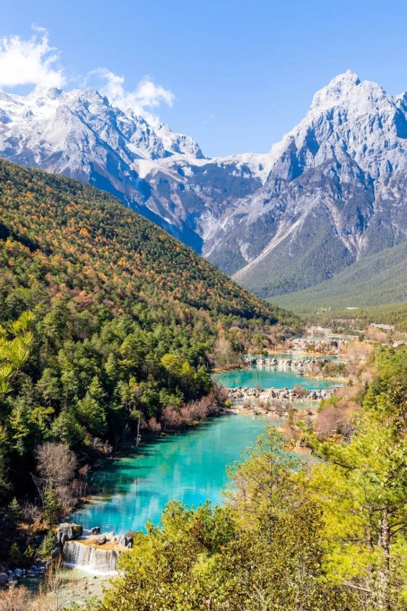 麗江之美,始于自然之恩賜。玉龍雪山如一位沉默的守護者,終年積雪,倒映在藍(lán)月谷的碧水之中,仿佛一幅未干的水墨長卷。清晨,薄霧輕繞山腰,馬幫鈴聲回蕩山谷;傍晚,夕陽灑金于雪峰之上,整個世界都染上溫柔的橘紅。