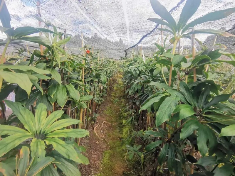 種子繁殖,加強(qiáng)日常管理及病蟲害防治。選擇排水良好的平地或緩坡地,土壤為富含有機(jī)質(zhì)的沙壤土。搭建遮光率為70%的蔭棚。整地時(shí)每畝施用農(nóng)家肥1000千克和氮磷鉀比例為15:15:15的三元復(fù)合肥20千克;6─7月或11─12月移栽2年苗;株行距20厘米×20厘米。移栽后覆土厚度3─5厘米,用松針或水冬瓜樹葉覆蓋墑面,澆透水。