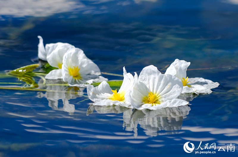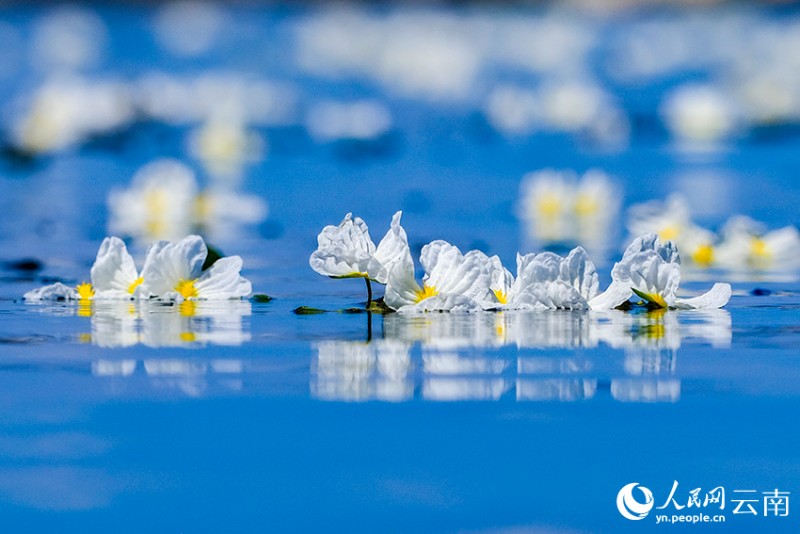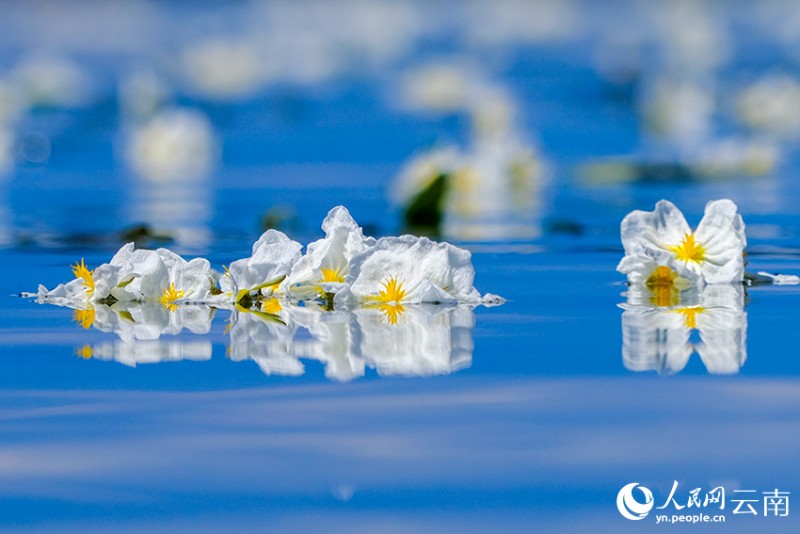 金秋十月,云南大理洱海清波蕩漾,趕上好天氣,藍(lán)天白云倒映在洱海里,被稱為“水質(zhì)試金石”的海菜花在湖面綻放。白色的花朵和藍(lán)色的湖面相映成趣,藍(lán)白之間盡顯洱海生態(tài)之美。