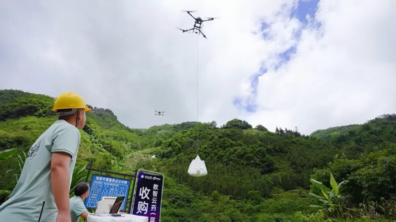 無人機運輸砂仁。紅河州委宣傳部 供圖