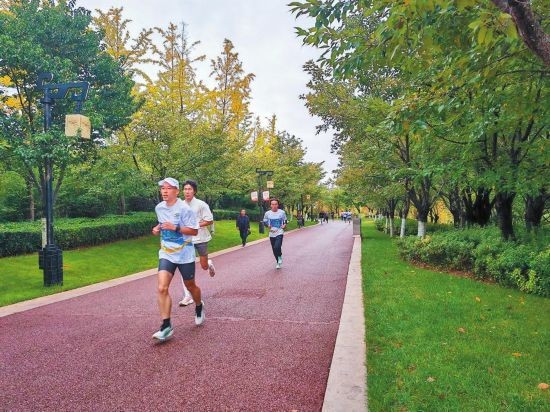 在昭陽秋色中奔跑。 本報記者 沈迅 攝