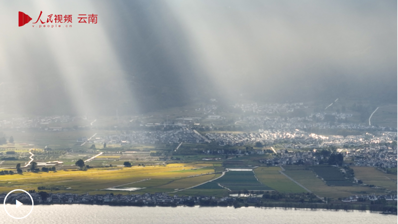 人民網(wǎng)大理10月13日電 (記者符皓)國(guó)慶假期剛過(guò),云南大理洱海之畔驚現(xiàn)壯觀的丁達(dá)爾光效應(yīng)。從洱海東面看去,只見(jiàn)陽(yáng)光從蒼山上空云層縫隙穿過(guò),散射在洱海西岸的田園里,畫(huà)面唯美壯觀,宛若電影大片。