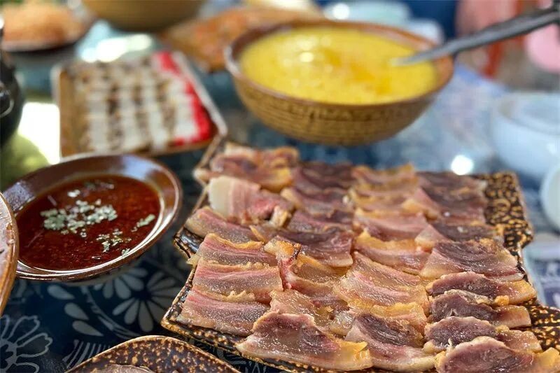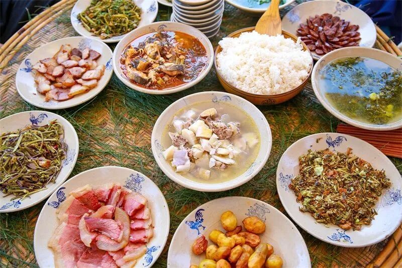 最是人間煙火色,且以美食慰風(fēng)塵。吃飯時(shí)間,來到(石咢)嘉鎮(zhèn)上的田園農(nóng)家小院,嘗一嘗當(dāng)?shù)氐男聫S火腿、大扎肉、黃精煮雞等美食,體味濃濃鄉(xiāng)愁。