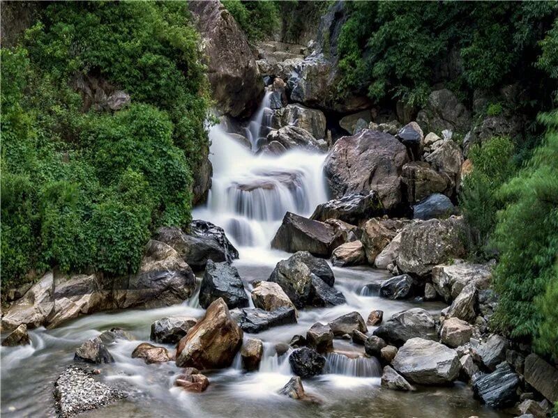 (石咢)嘉山有多高,水就有多長(zhǎng),流泉在崇山峻嶺間迂回跌宕,形成了如詩如畫的瀑布群。瀑布落差有大有小,有的20多米,有的近百米,發(fā)出巨大的轟鳴聲,一瀑一景,景致奇特。