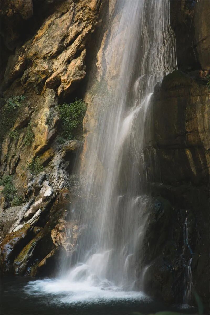 其中,最為壯觀的要數(shù)虹龍河瀑布,位于去往九天濕地的必經(jīng)之路上,遠(yuǎn)遠(yuǎn)看去,只見一股清流直瀉而下,在陽光映射下像是懸空彩練,珠花迸發(fā),猶如巨龍吐珠。走近一看,水落之處宛若龍首探出深潭,水柱噴天而起,蔚為壯觀。