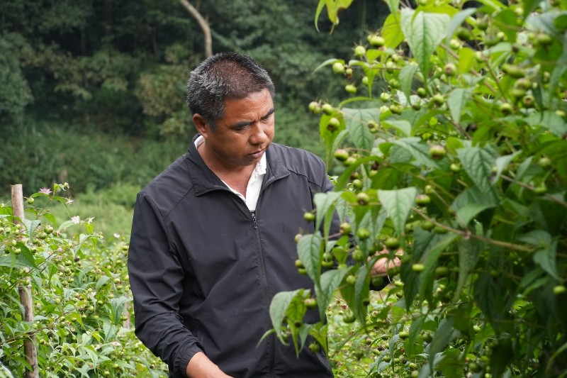 在馬關(guān)縣仁和鎮(zhèn)三村,村黨總支書記、主任楊紹榮是紅果參種植的“先行者”。2024年他試種紅果參盈利后,今年不僅拓展種植規(guī)模,還帶動(dòng)周邊農(nóng)戶共種植400畝。通過(guò)精準(zhǔn)防治病蟲(chóng)害、科學(xué)施肥,目前紅果參長(zhǎng)勢(shì)喜人?!拔铱疾炝藘赡瓴旁苑N,去年種植了40畝效益不錯(cuò),今年擴(kuò)種到300畝?!睏罱B榮采用仿野生種植技術(shù),果實(shí)無(wú)添加劑、無(wú)污染、口感好。