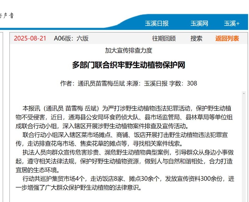 1636、多部門聯(lián)合織牢野生動植物保護網(wǎng)
