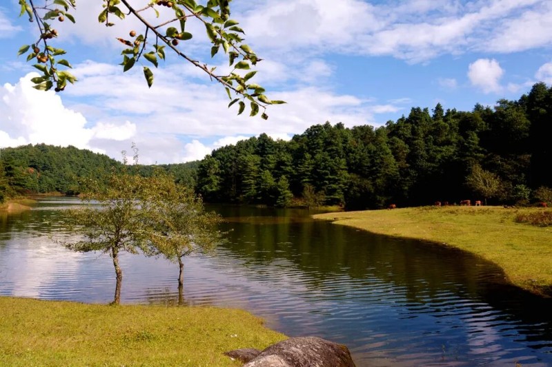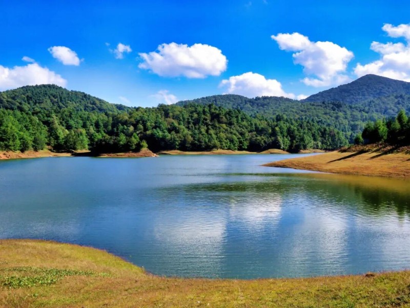 秋光漫過云縣涌寶鎮(zhèn)大亮山山脊,亮山天池便成了群山私藏的調(diào)色盤。黛色山巒沉默如框,將一汪澄碧妥帖安放,秋意在此靜靜發(fā)酵。