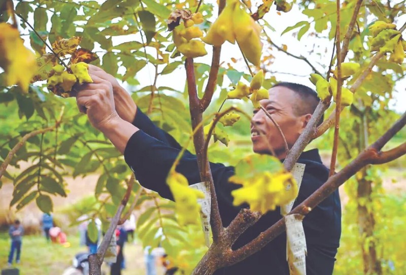 測(cè)產(chǎn)地倍農(nóng)采收五倍子(張靖川 攝)