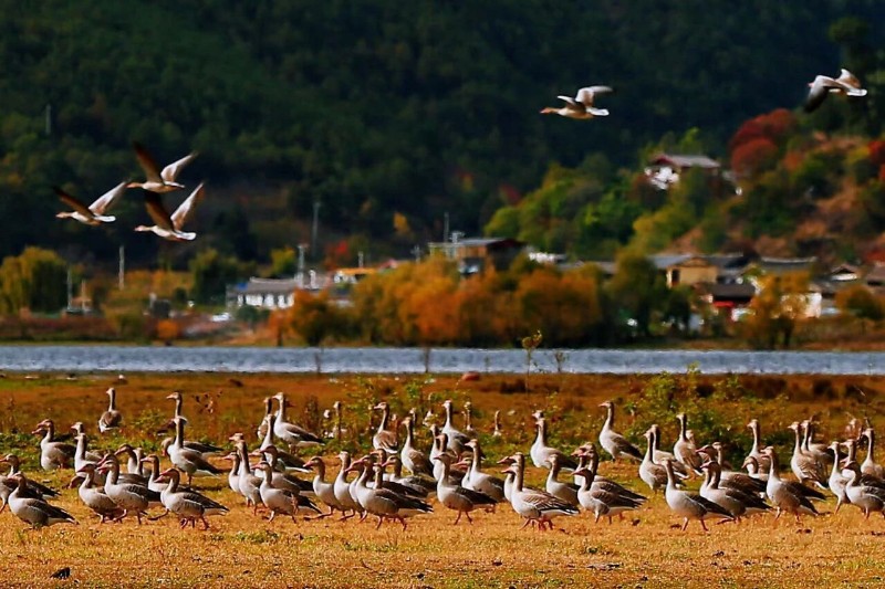 近年來,管護(hù)局積極構(gòu)建生態(tài)保護(hù)網(wǎng),運(yùn)用系統(tǒng)思維與科學(xué)方法,加大投入力度,持續(xù)推進(jìn)退化濕地修復(fù)、關(guān)鍵棲息地恢復(fù)等重點(diǎn)工程;同時,強(qiáng)化外來有害生物防治與野生動物疫源疫病管控,為候鳥打造更優(yōu)質(zhì)的棲息環(huán)境,筑牢區(qū)域生物多樣性的安全屏障。經(jīng)過多年持續(xù)保護(hù)管理,拉市海自然保護(hù)區(qū)內(nèi)生物多樣性與生態(tài)系統(tǒng)得到有效保護(hù)。保護(hù)區(qū)共記錄維管束植物904種、昆蟲254種、脊椎動物455種,鳥類種類從1997年的31種增至目前的341種。近4年監(jiān)測到新記錄鳥類有禿鸛、肉垂麥雞、烏雕、豆雁、紫翅椋鳥等。