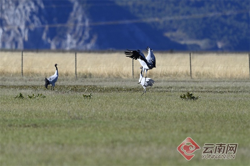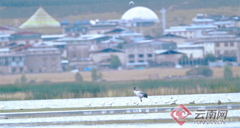 監(jiān)測數(shù)據(jù)顯示,2023年至2025年納帕海連續(xù)3年全年監(jiān)測到黑頸鶴,部分個體已從“越冬”轉為“夏季留守”,打破了“來時不過九月九,去時不過三月三”的傳統(tǒng)規(guī)律。作為黑頸鶴中部越冬種群的主要棲息地,納帕海當前水草豐茂,黑頸鶴覓食、踱步的場景與秋日暖陽構成生態(tài)畫卷。