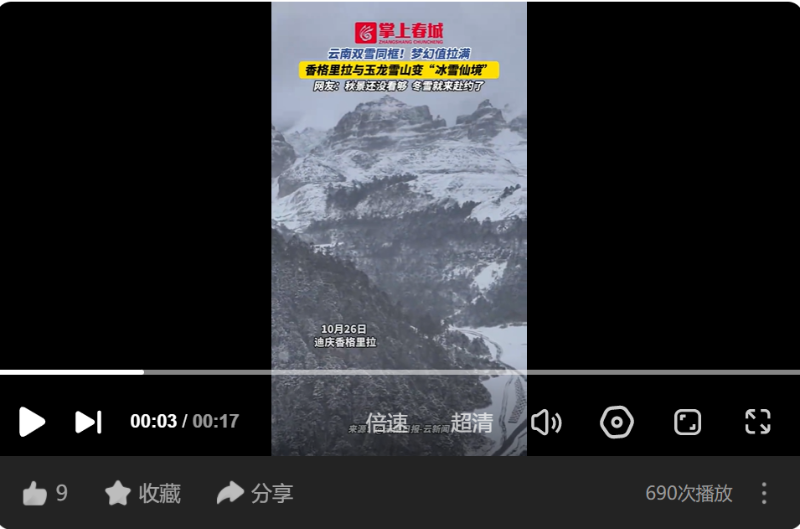 云南雙雪同框!夢幻值拉滿,香格里拉與玉龍雪山變“冰雪仙境”,網(wǎng)友:秋景還沒看夠,冬雪就來赴約了