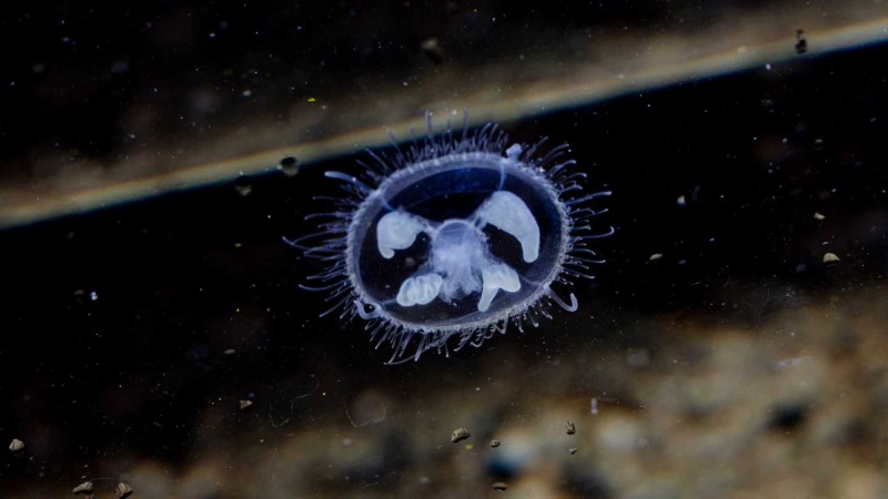 10月12日下午,幾位生態(tài)攝影愛好者在水中偶然發(fā)現(xiàn)了一群晶瑩剔透的“精靈”,它們通體透亮、姿態(tài)悠然,宛如漂浮在水中的透明小傘。經(jīng)相關(guān)專家仔細(xì)辨認(rèn),這群神秘的水中生物,正是有著“地球活化石”“水中大熊貓”美譽(yù)的桃花水母。?