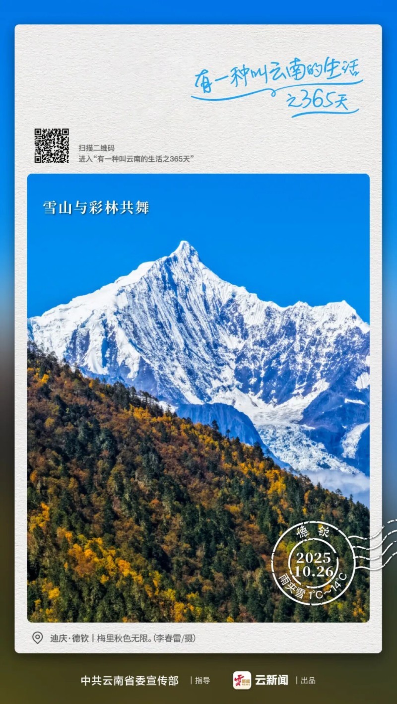 當(dāng)秋的彩墨潑灑大地,在云南省迪慶藏族自治州的德欽縣,早已突破色彩的邊界,上演起雪山與彩林的共舞。