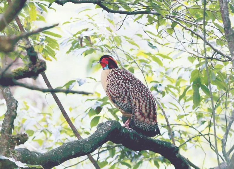 在生態(tài)系統(tǒng)中,黃腹角雉既是食物鏈的重要環(huán)節(jié),也是生物多樣性保護(hù)的旗艦物種。《齊民要術(shù)》有言:“鳥之食蟲,猶農(nóng)之除害?!彼鼈兊拇嬖诓粌H維系著森林生態(tài)的平衡,更成為衡量生態(tài)環(huán)境健康的重要指標(biāo)。對食物精細(xì)選擇的習(xí)性,使其在森林生態(tài)系統(tǒng)中扮演著種子擴(kuò)散與昆蟲控制的雙重角色。