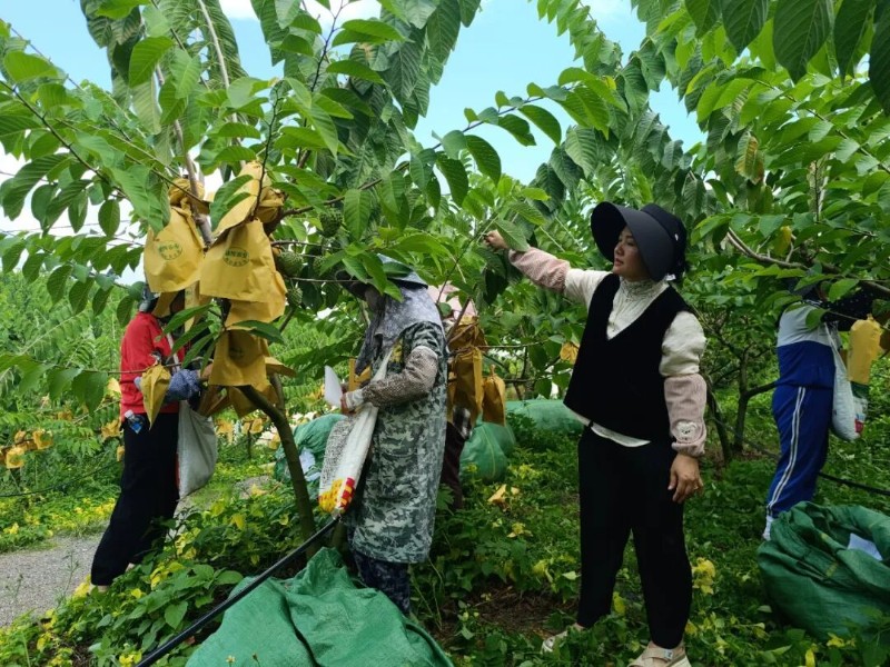 眼下正值釋迦果冬季果套袋管理的關(guān)鍵時(shí)期,在云縣康暉農(nóng)業(yè)科技開發(fā)有限公司的鳳梨釋迦種植基地里,500余畝果樹綠意盎然,飽滿的果實(shí)掛滿枝頭,微風(fēng)輕拂,果香撲鼻而來??偨?jīng)理?xiàng)顟c穿梭在林間,親力親為地帶領(lǐng)20余名工人嚴(yán)格按照技術(shù)規(guī)范進(jìn)行修剪、疏果、清洗、套袋等工作,一首繁忙的豐收序曲正在果園中奏響。