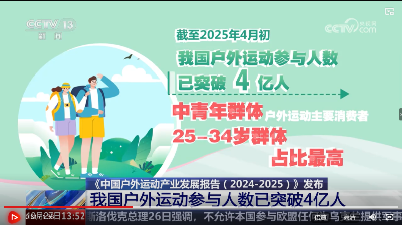 [新聞直播間]《中國戶外運動產(chǎn)業(yè)發(fā)展報告(2024-2025)》發(fā)布 我國戶外運動參與人數(shù)已突破4億