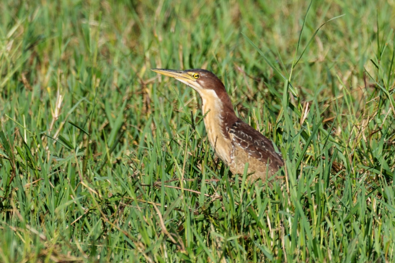 紫背葦鳽是一種體長(zhǎng)約33cm的小型鷺類,隸屬鵜形目鷺科葦鳽屬。雄鳥頭頂暗栗褐色,上體紫栗色,腹面淡土黃色,從喉至胸有一栗褐色縱線。飛羽黑色、翅上覆羽灰黃色,飛翔時(shí)與黑色飛羽、紫栗色的上體形成鮮明對(duì)比。雌鳥從頭頂至背紫栗色,但背部有細(xì)小的白色斑點(diǎn)。