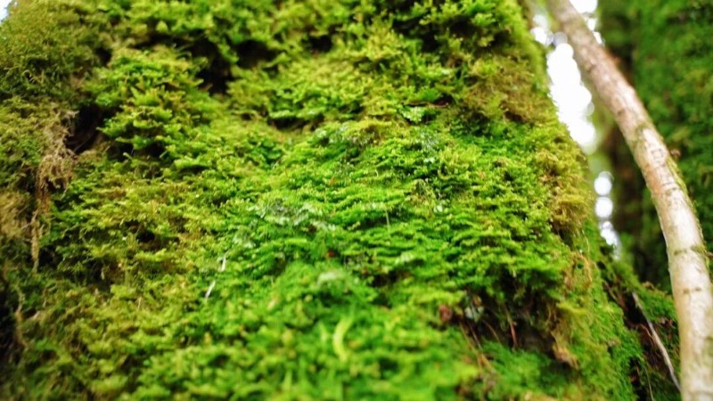 億萬顆絨球般的苔蘚包裹著樹干、巖石、小徑,像是大地披上了一件厚厚的綠絨棉衣。