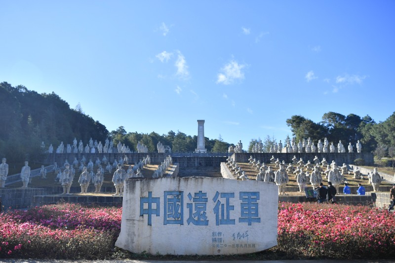 2019年11月19日,云南省龍陵縣的松山大戰(zhàn)遺址紀(jì)念園,參觀者瞻仰中國(guó)遠(yuǎn)征軍雕塑群。中新社記者 劉冉陽 攝