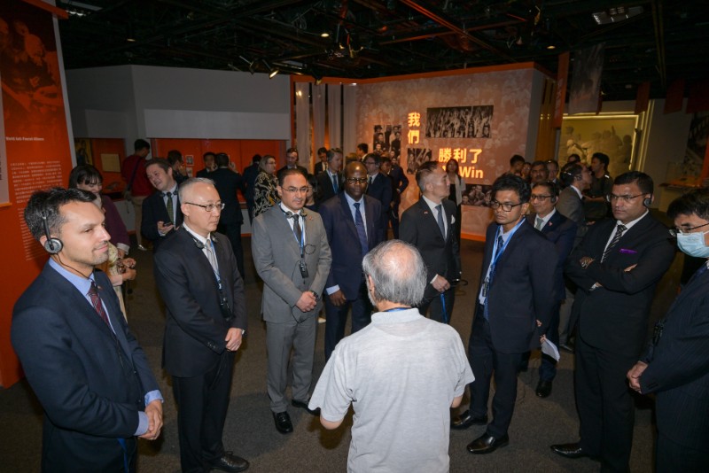 2025年10月17日,香港特區(qū)政府官員聯(lián)同多名外國(guó)駐港領(lǐng)團(tuán)和商會(huì)代表在香港歷史博物館參觀“萬眾一心 維護(hù)和平──紀(jì)念抗戰(zhàn)勝利八十周年展覽”。中新社記者 陳永諾 攝