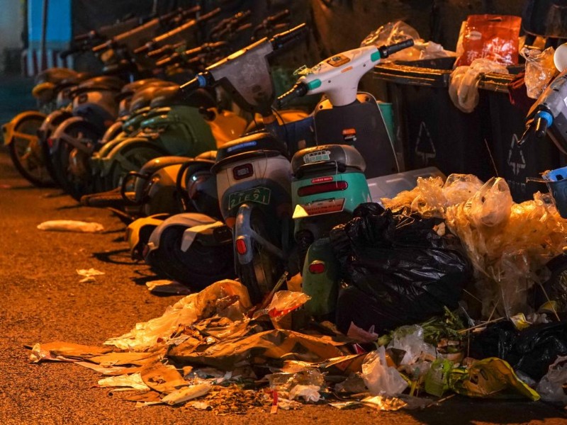 10月10日晚,在云南昆明某夜市,多個垃圾桶被塞滿,殘羹剩飯不斷溢出,不僅造成食物浪費,也對周邊環(huán)境衛(wèi)生帶來影響。