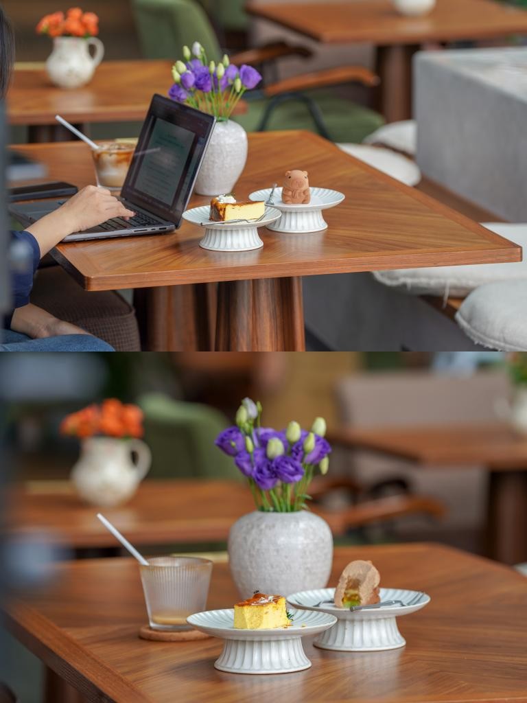 拼版照片:上圖為10月11日,一位顧客在云南昆明某甜品店吃甜品;下圖為僅吃了幾口就被遺棄的蛋糕。