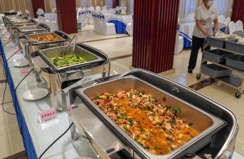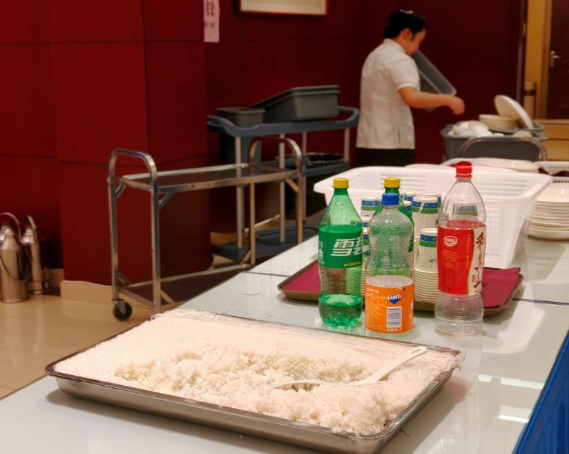 10月12日,在云南某市某食堂內(nèi),用餐人員已全部離去,只剩食堂工作人員在打掃衛(wèi)生,但多個餐盤中仍剩余菜品、主食。