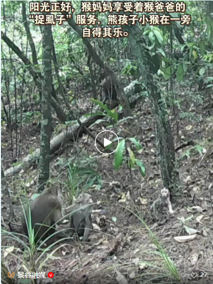 紅河綠春:熊猴家族“出游” 紅外相機(jī)記錄溫馨時(shí)刻