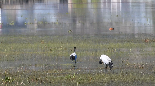 10月15日,納帕海省級(jí)自然保護(hù)區(qū)管護(hù)局工作人員監(jiān)測(cè)發(fā)現(xiàn),今年首批越冬黑頸鶴已飛抵納帕海,開啟一年一度的候鳥越冬遷徙季。截至目前,越冬黑頸鶴已飛抵79只。隨著氣溫的下降,黑頸鶴的“大部隊(duì)”將陸續(xù)飛抵納帕海。
