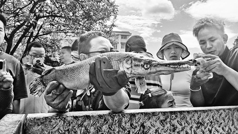 “捕獲怪魚”的消息迅速傳遍公園,更多聞訊趕來的市民紛紛湊近一探究竟。