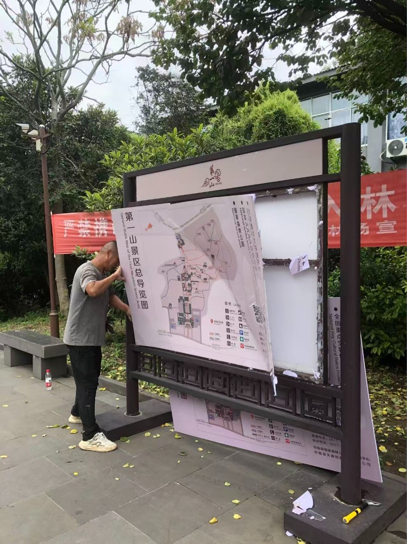 指示牌安全巡查覆蓋景區(qū)主干道、岔路口及森林邊緣區(qū)域。共排查各類指示牌,發(fā)現(xiàn)指路牌因雨水沖刷導(dǎo)致字跡模糊,森林防火警示牌傾斜等問題,巡查人員現(xiàn)場對傾斜指示牌進行扶正固定,對模糊指示牌登記造冊,完成翻新更換,確保標(biāo)識清晰、引導(dǎo)準(zhǔn)確。?