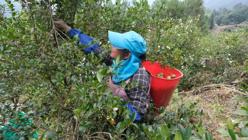 “我們來這里采油茶,每天收入有150塊錢左右,不用去太遠(yuǎn)的地方打工,這個產(chǎn)業(yè)對我們有很大的幫助,希望它發(fā)展得越來越好。”來自五龍鄉(xiāng)南巖村委會大橋村的務(wù)工人員田會梅笑著說。在魯克村油茶基地,像田會梅這樣的務(wù)工人員還有不少,他們無需背井離鄉(xiāng),在家門口就能實現(xiàn)穩(wěn)定就業(yè)。不僅如此,當(dāng)?shù)?38戶農(nóng)戶還以土地、勞動力入股合作社,通過“利益雙綁”機(jī)制,既能享受產(chǎn)業(yè)分紅,又能通過參與種植、管護(hù)獲得額外收入,真正把“飯碗”端在了家門口的山林里。