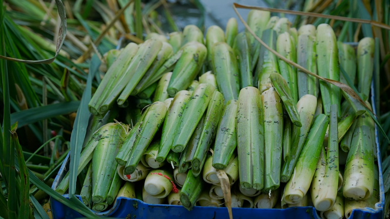 玉龍社區(qū)的四重自然饋贈(zèng),仿佛為“小早茭”量身定制了黃金屋:1500米的海拔是天然的恒溫箱,南盤江的清水如瓊漿滋潤(rùn),肥沃的土壤像松軟的面包,全年2000小時(shí)的陽(yáng)光則像永不熄滅的聚光燈。“這些條件讓‘小早茭’搶跑二十天,又比高海拔產(chǎn)區(qū)晚半個(gè)月謝幕?!狈N植戶孫文云比劃著說(shuō)。這得天獨(dú)厚的生長(zhǎng)節(jié)奏,讓產(chǎn)品在市場(chǎng)上跳起了獨(dú)舞,批發(fā)價(jià)始終穩(wěn)居每斤3元以上的高位,畝產(chǎn)效益是傳統(tǒng)作物的三倍。如今玉龍社區(qū)的1500畝茭白田,已化作1000余萬(wàn)元的金色海洋。