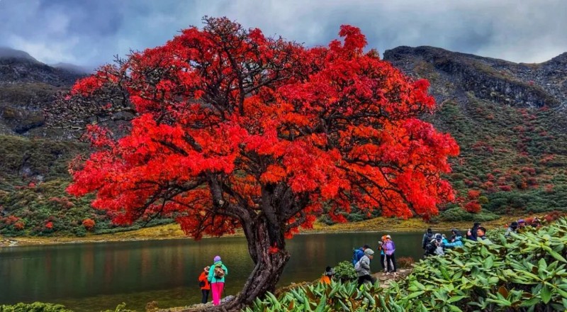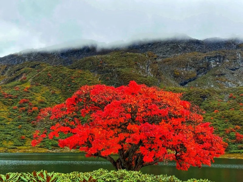 哈巴雪山腳下的“網(wǎng)紅樹”紅了