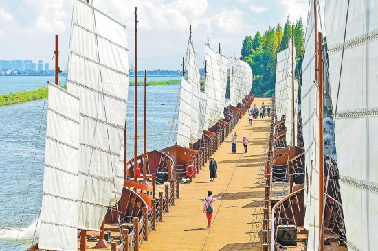 近日,昆明滇池綠道環(huán)草海段鋼浮橋重新向公眾開放。該橋是我省首座大型鋼浮橋,全長(zhǎng)260米,以24組“帆船”造型藝術(shù)化再現(xiàn)“百舸爭(zhēng)流、千帆競(jìng)發(fā)”的滇池古渡意象。該浮橋在2023年建成后曾對(duì)公眾開放過(guò)一段時(shí)間,后處于封閉狀態(tài)。此次重新開放,讓市民游客得以完整體驗(yàn)環(huán)滇池的自然風(fēng)光與人文景觀。圖為市民游客在鋼浮橋游覽。本報(bào)記者 胡妤雅 攝