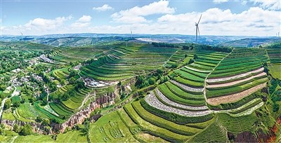 持續(xù)改善環(huán)境質(zhì)量 在甘肅定西通渭縣馬營鎮(zhèn),經(jīng)過系統(tǒng)治理,黃土高原上的層層梯田風(fēng)景如畫。 周修建攝(影像中國)