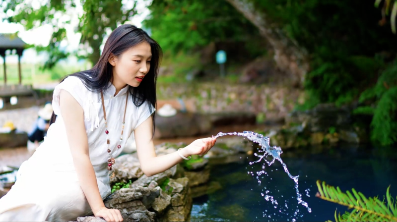 聽清泉低吟,看池塘月影