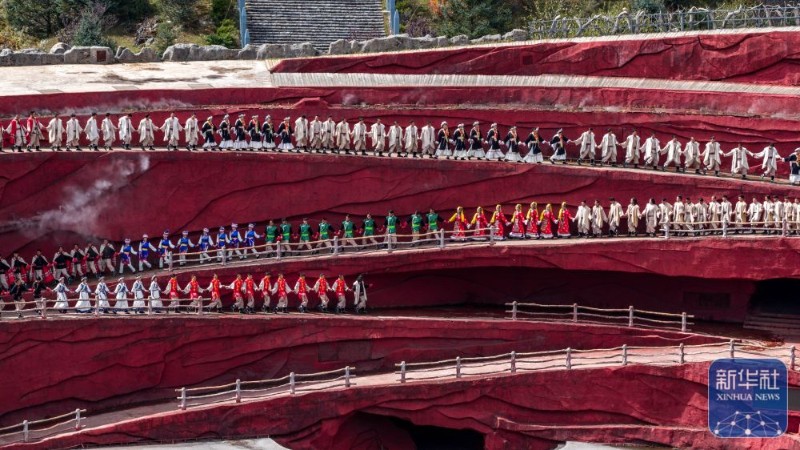在麗江市玉龍雪山景區(qū)拍攝的《印象麗江》演出現(xiàn)場(chǎng)。