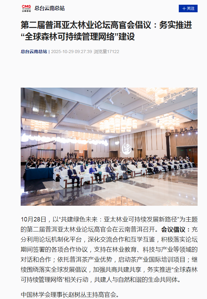 第二屆普洱亞太林業(yè)論壇高官會(huì)倡議:務(wù)實(shí)推進(jìn)“全球森林可持續(xù)管理網(wǎng)絡(luò)”建設(shè)