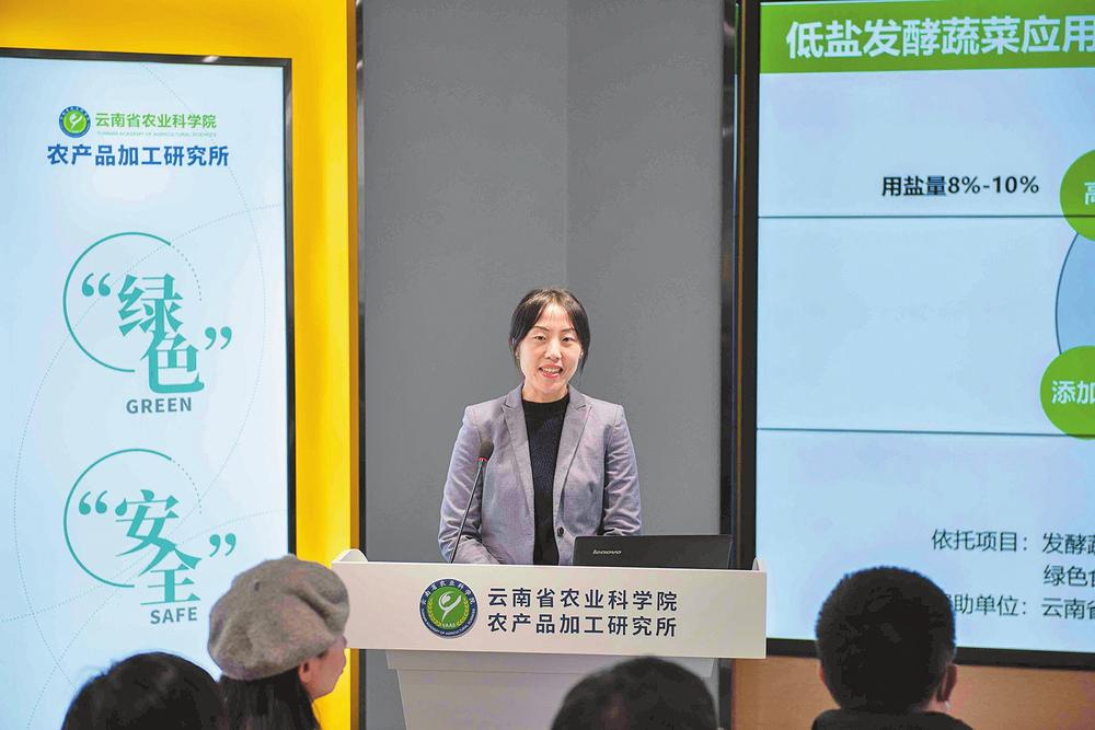 史巧在云南省農(nóng)業(yè)科學(xué)院農(nóng)產(chǎn)品加工所科技成果推介會活動上進行宣講。 本報通訊員 湯回花 攝