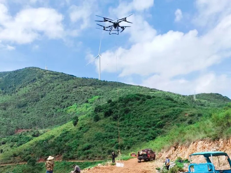 苗木運輸環(huán)節(jié),采用無人機運苗策略,精準實施“空投造林”,每畝造林苗木運輸效率提升12倍,運輸成本降低40%,有效克服交通障礙、損傷苗木、運輸效率低等問題。2024年以來,累計使用無人機完成超過5萬畝造林苗木運輸任務,成為山區(qū)造林的“空中生命線”。
